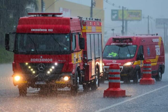 O Corpo de Bombeiros Militar de Santa Catarina orienta a todos que acompanhem os alertas emitidos pela Defesa Civil do Estado e evitem sair de casa neste momento. Em caso de emergência, ligue 193.