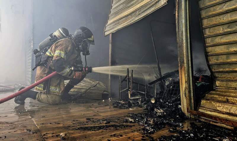 Rio de Janeiro 12/01/2025 - Defesa Civil combate incêndio no camelódromo da Uruguaiana. Fotos:  Angela Goes/CBMERJ